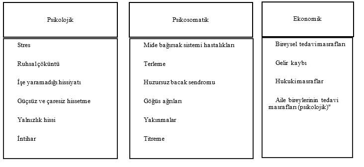 Şekil 1. Mobbing sonucu meydana gelen psikolojik – fizyolojik – ekonomik sonuçların bireysel açıdan ele alınması (Tınaz, 2006).