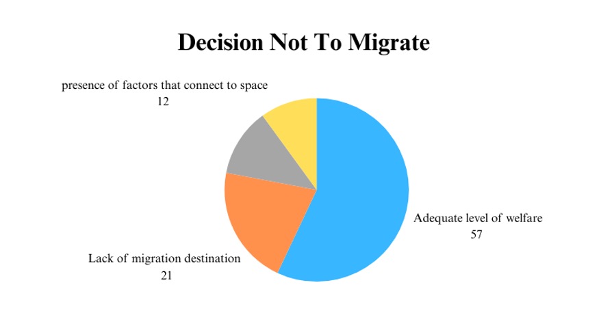 - 12% of participantsreported that they chose not to migrate due to a strong connection to their homeland, citing reasons such as maintaining their established way of life or patriotism.